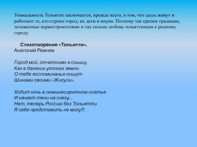 3. Стихотворение «Тольятти». Анатолий Ремнев