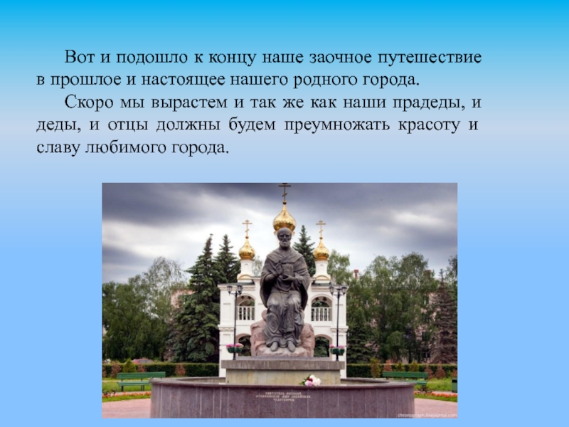 Скоро мы вырастем и так же как наши прадеды, и деды, и отцы должны будем преумножать красоту и славу любимого города.