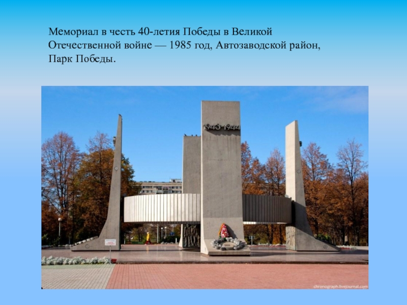 Слайд 17Мемориал в честь 40-летия Победы в Великой Отечественной войне — 1985