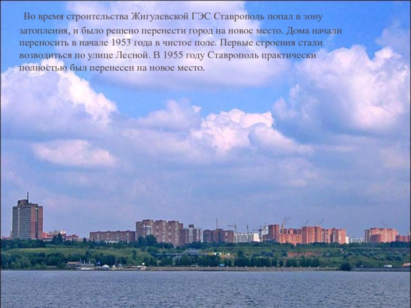 Слайд 7 Во время строительства Жигулевской ГЭС Ставрополь попал в