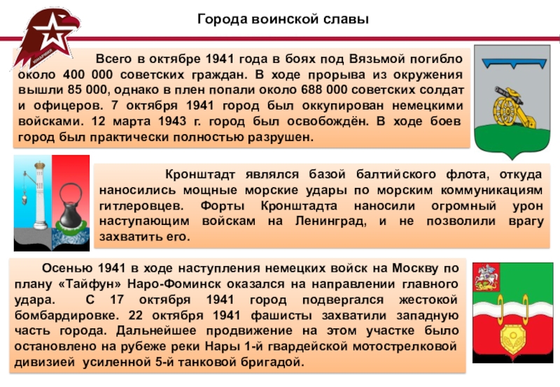 Кронштадт являлся базой балтийского флота, откуда наносились мощные морские удары по морским коммуникациям гитлеровцев. Форты Кронштадта наносили огромный урон наступающим войскам на Ленинград, и не позволили врагу захватить его.