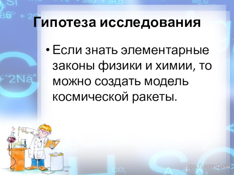 Гипотеза исследованияЕсли знать элементарные законы физики и химии, то можно создать модель космической ракеты.