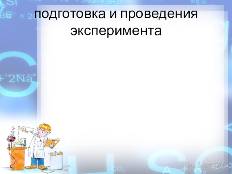 Слайд 12подготовка и проведения эксперимента