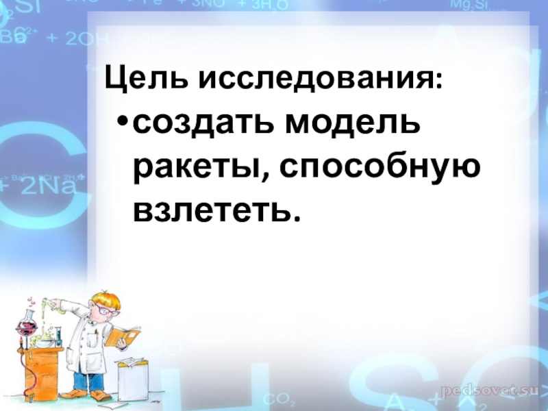 Цель исследования: создать модель ракеты, способную взлететь.
