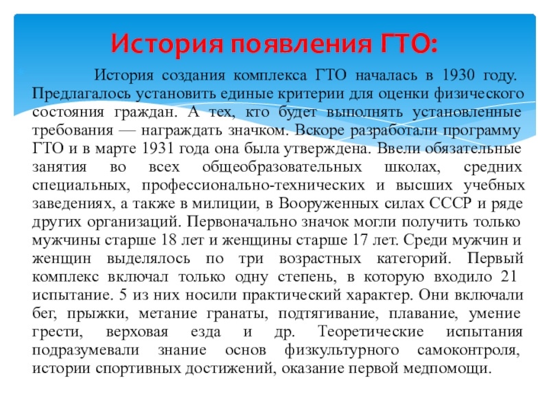 История появления ГТО: