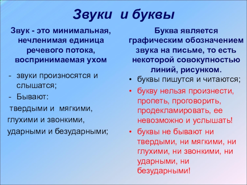 букву нельзя произнести, пропеть, проговорить, продекламировать, ее невозможно и услышать!