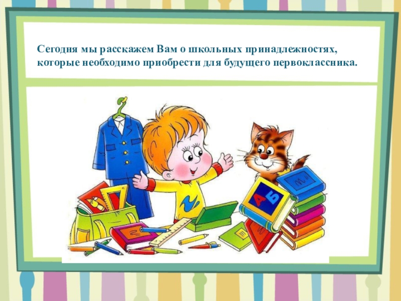 Слайд 2Сегодня мы расскажем Вам о школьных принадлежностях, которые необходимо приобрести для