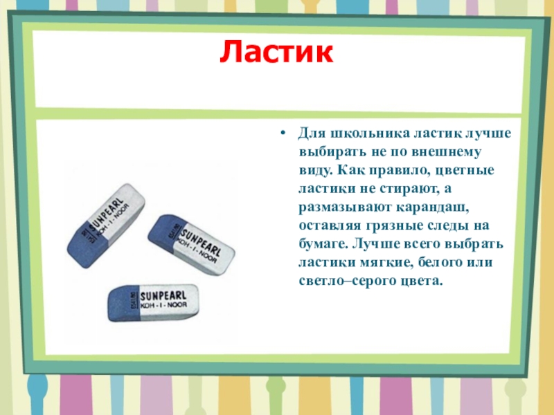 Для школьника ластик лучше выбирать не по внешнему виду. Как правило, цветные