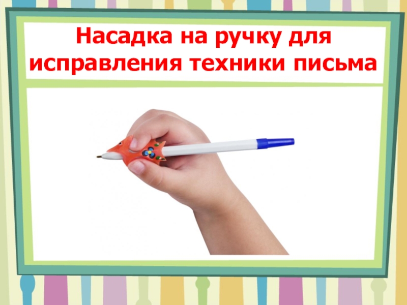 тонкие или толстые ручки увеличивают напряжение мышц при письме. Для учащихся начальных классов рекомендуются ручки диаметром 7—8 мм, длиной 155 мм и массой не более 10 г.