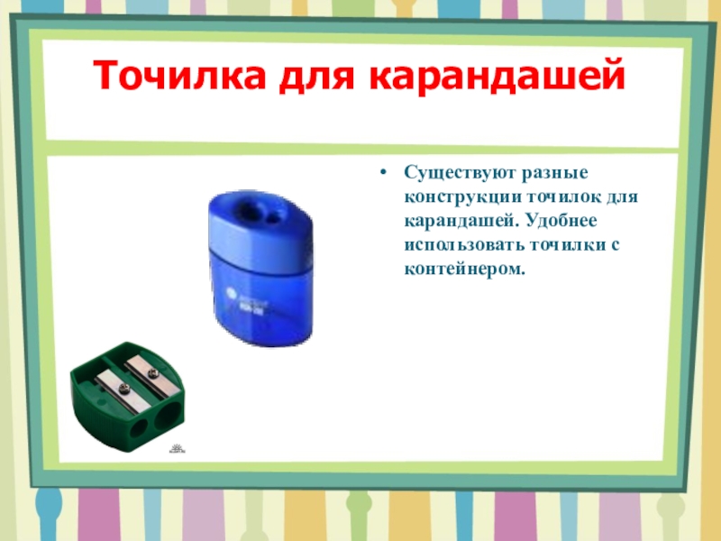 Существуют разные конструкции точилок для карандашей. Удобнее