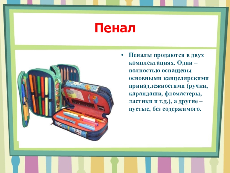 Пеналы продаются в двух комплектациях. Одни – полностью оснащены основными канцелярскими