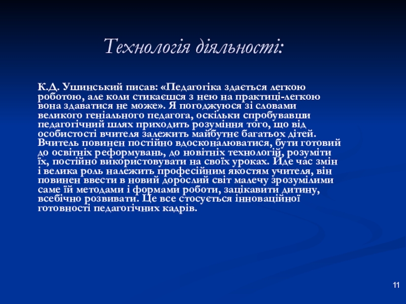 К.Д. Ушинський писав: «Педагогіка здається легкою роботою, але коли