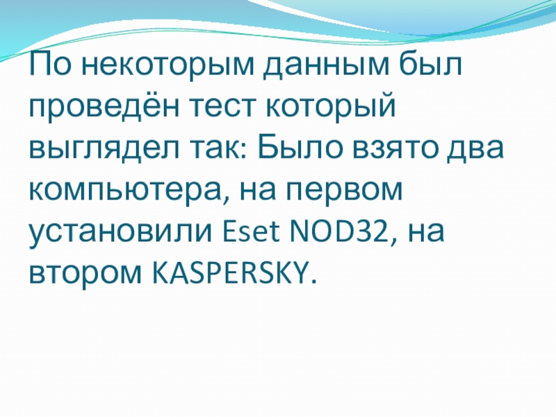 По некоторым данным был проведён тест который выглядел так: Было взято два компьютера, на первом установили Eset