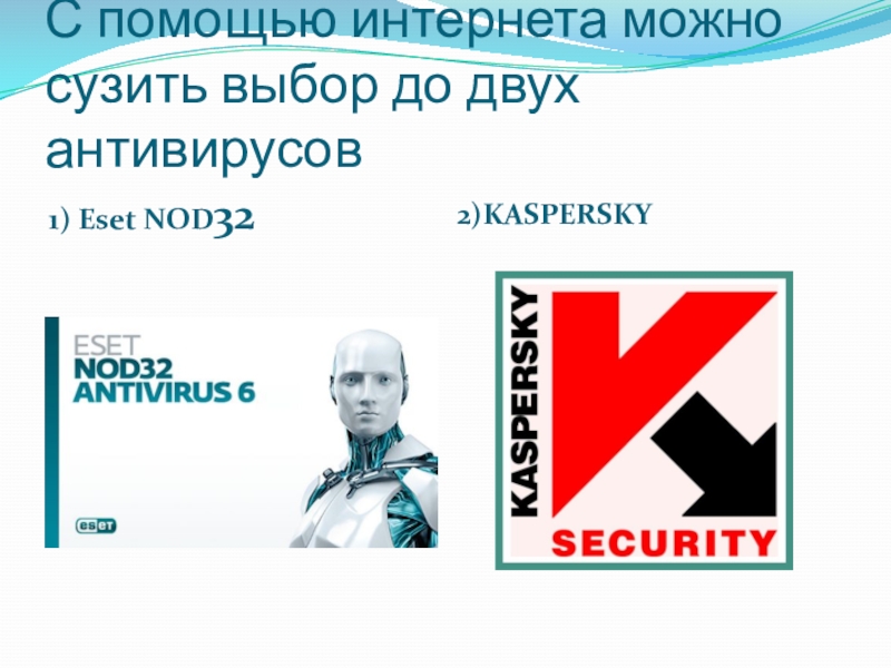 Слайд 6С помощью интернета можно сузить выбор до двух антивирусов