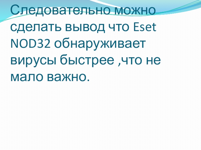 Слайд 13Следовательно можно сделать вывод что Eset NOD32 обнаруживает вирусы быстрее ,что