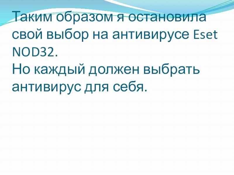 Слайд 15Таким образом я остановила свой выбор на антивирусе Eset NOD32. Но каждый