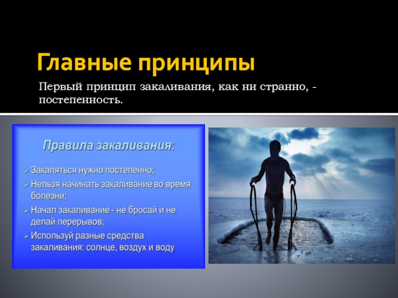 Главные принципыПервый принцип закаливания, как ни странно, - постепенность.