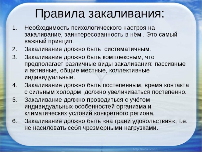 Слайд 1ПРАВИЛА ЗАКАЛИВАНИЯ