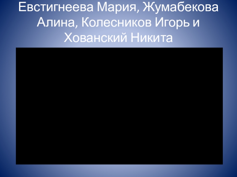 Слайд 5Евстигнеева Мария, Жумабекова Алина, Колесников Игорь и Хованский Никита