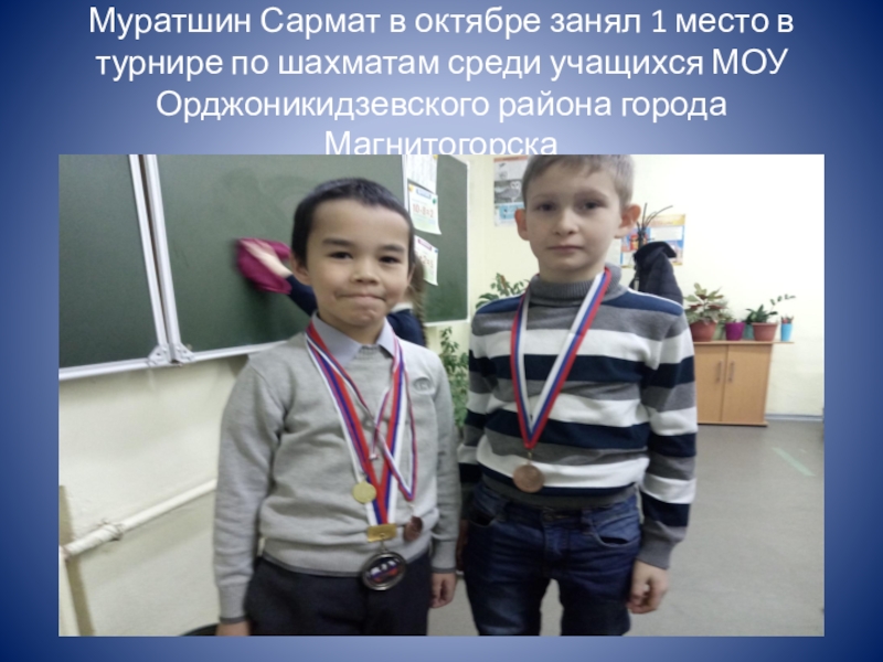 Слайд 15Муратшин Сармат в октябре занял 1 место в турнире по шахматам
