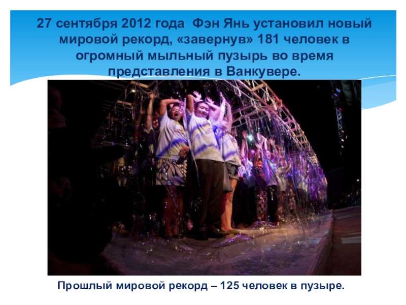 Прошлый мировой рекорд – 125 человек в пузыре.
