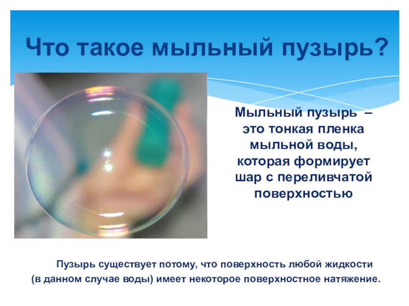 (в данном случае воды) имеет некоторое поверхностное натяжение.