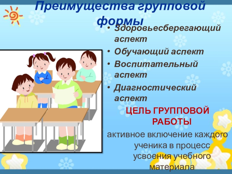 Слайд 4Преимущества групповой формы