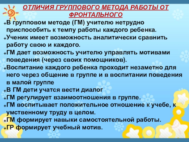 Слайд 23ОТЛИЧИЯ ГРУППОВОГО МЕТОДА РАБОТЫ ОТ ФРОНТАЛЬНОГО