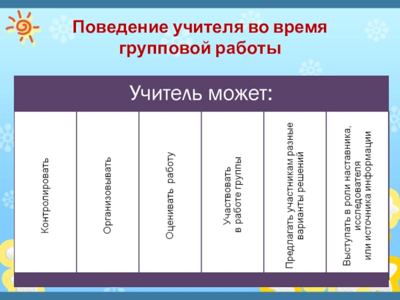 Слайд 26Поведение учителя во время групповой работы