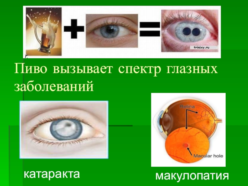 Слайд 17Пиво вызывает спектр глазных заболеваний
