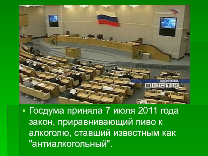 Госдума приняла 7 июля 2011 года закон, приравнивающий пиво к алкоголю,