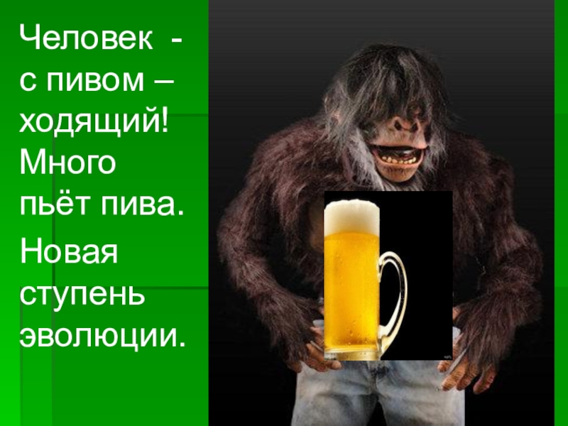 Слайд 16Человек -с пивом –ходящий! Много пьёт пива.