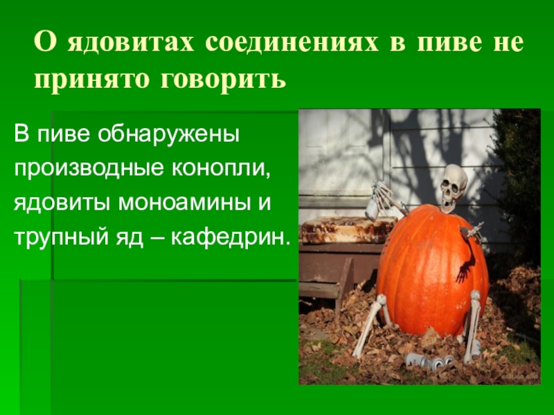 Слайд 20О ядовитах соединениях в пиве не принято говорить