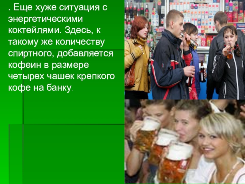 Слайд 27. Еще хуже ситуация с энергетическими коктейлями. Здесь, к такому же