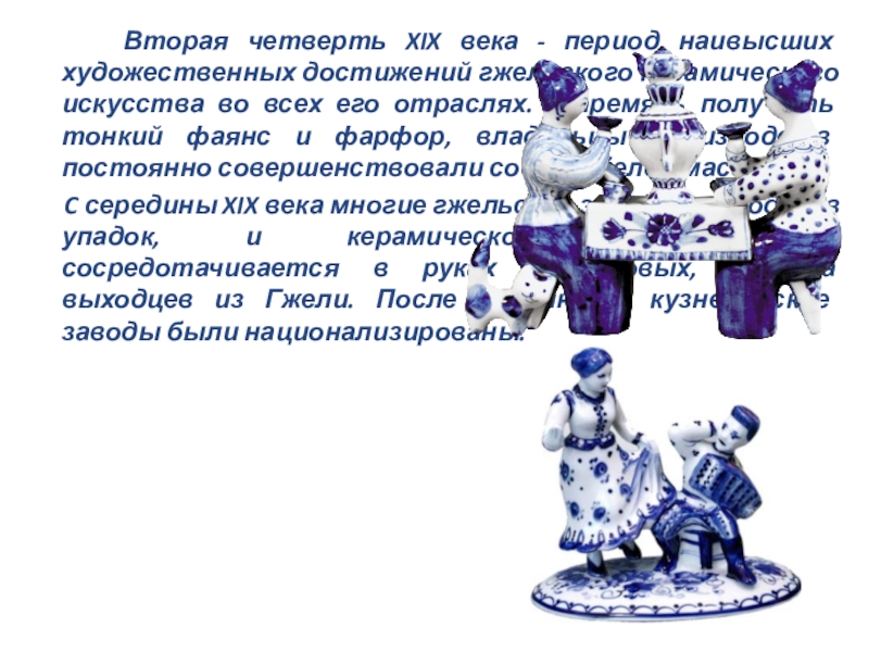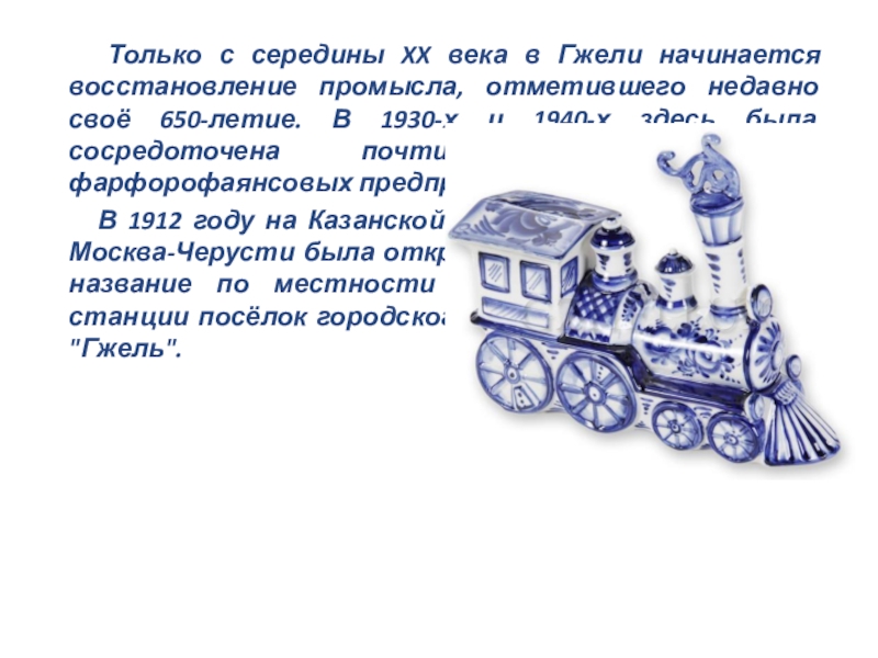 Слайд 7 Только с середины XX века в Гжели начинается