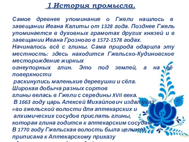 Слайд 2 1.История промысла.