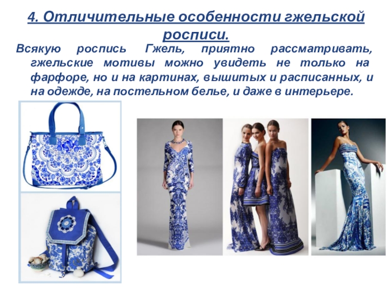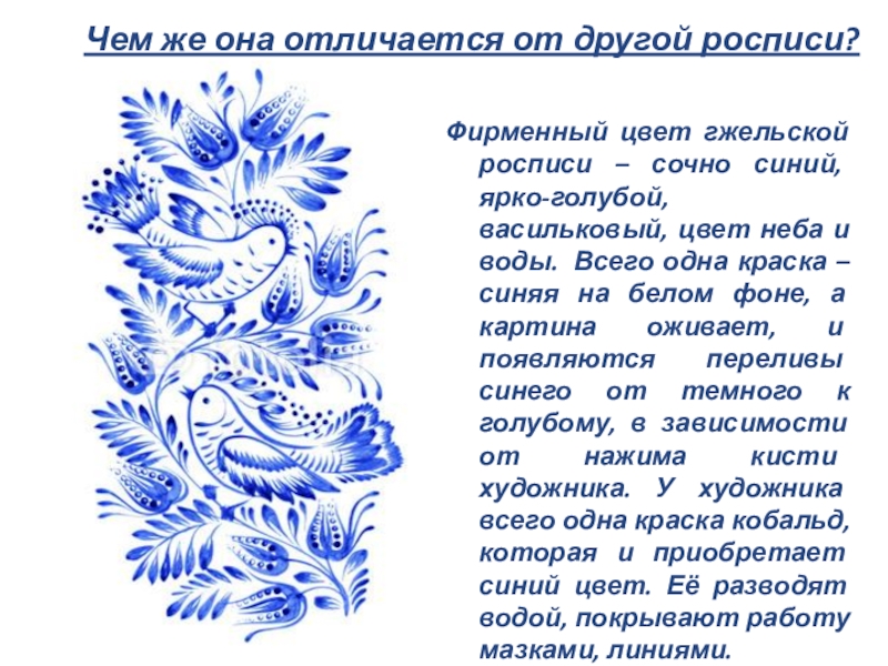 Слайд 114. Отличительные особенности гжельской росписи.