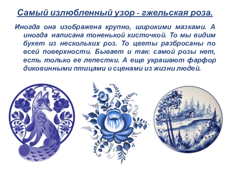 Слайд 13Самый излюбленный узор - гжельская роза.