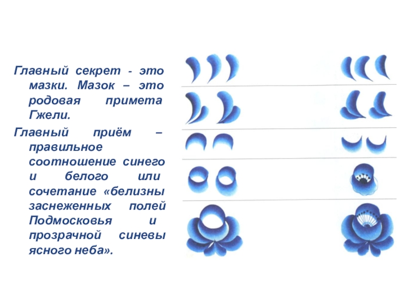 Главный секрет - это мазки. Мазок – это родовая примета Гжели.