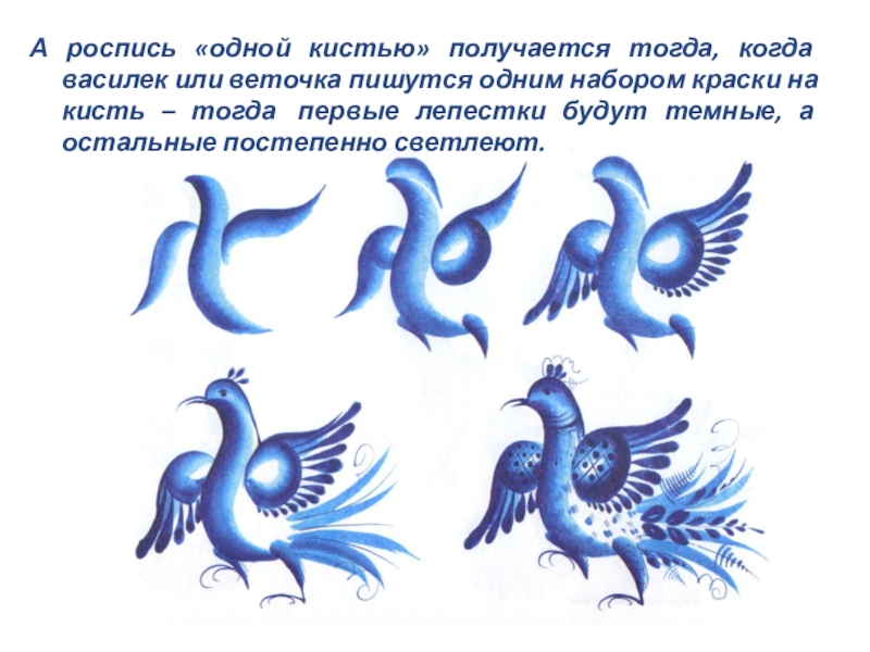 Слайд 21А роспись «одной кистью» получается тогда, когда василек или веточка пишутся