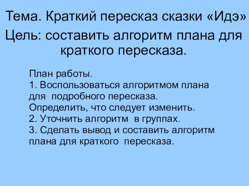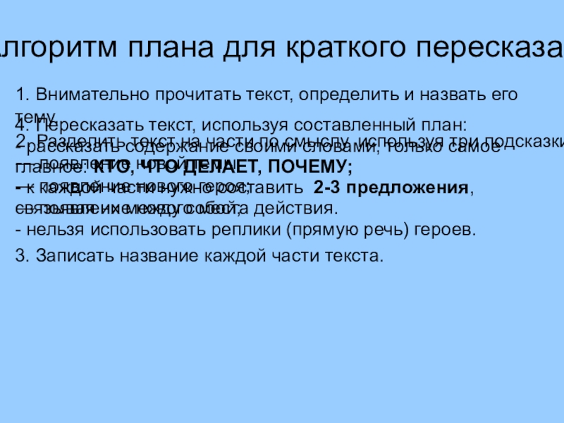 3. Сделать вывод и составить алгоритм плана для краткого пересказа.