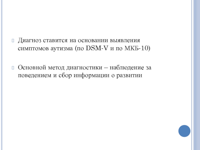 Слайд 11Диагноз ставится на основании выявления симптомов аутизма (по DSM-V и по