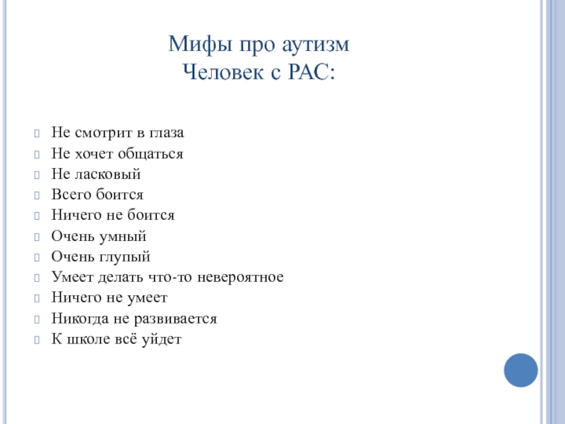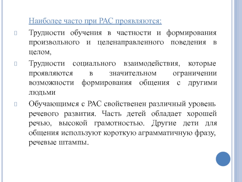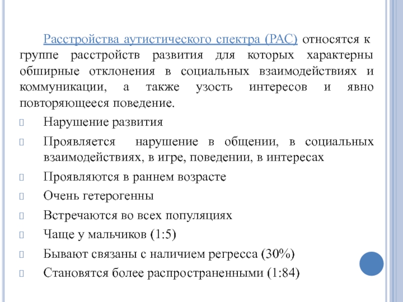 Слайд 2Расстройства аутистического спектра (РАС) относятся к группе расстройств развития для которых