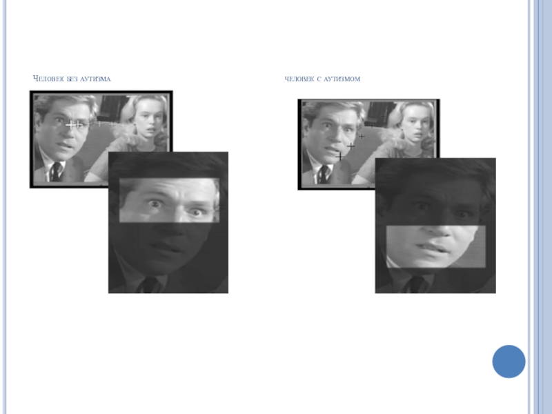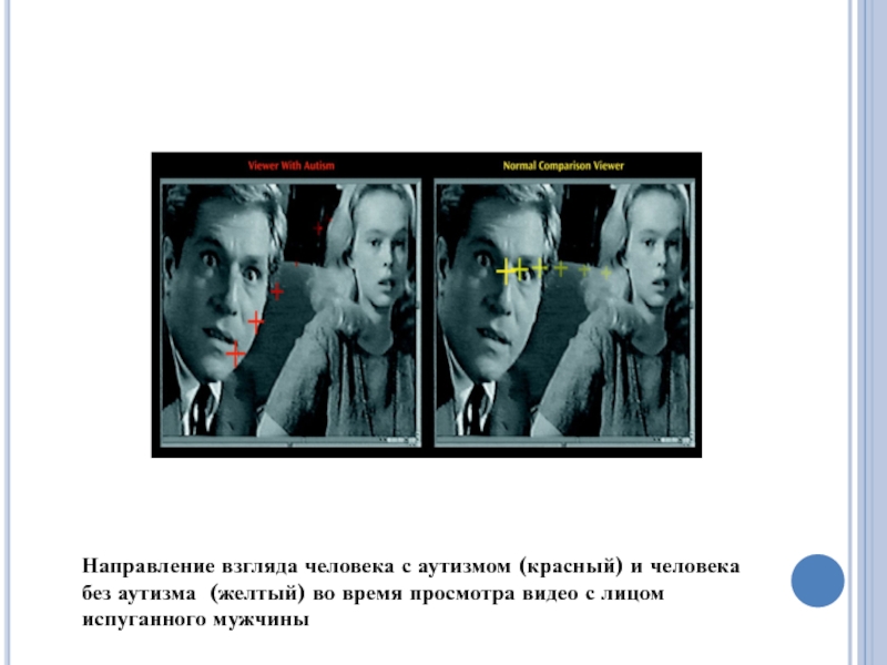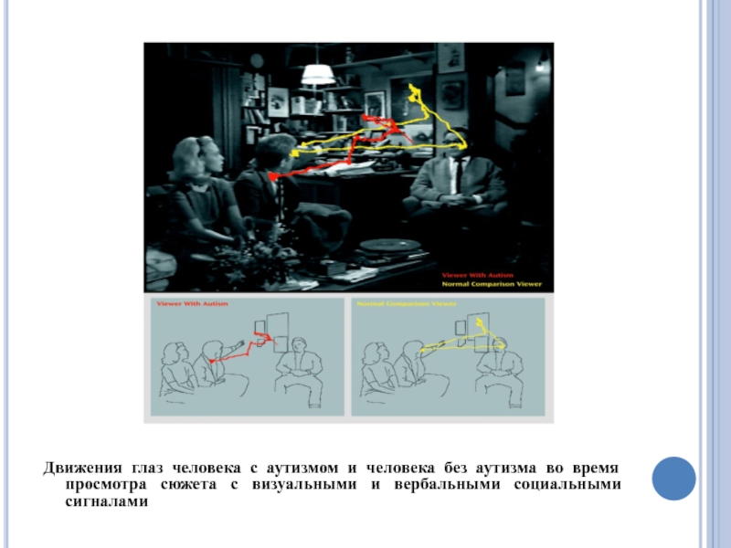 Слайд 6Движения глаз человека с аутизмом и человека без аутизма во время