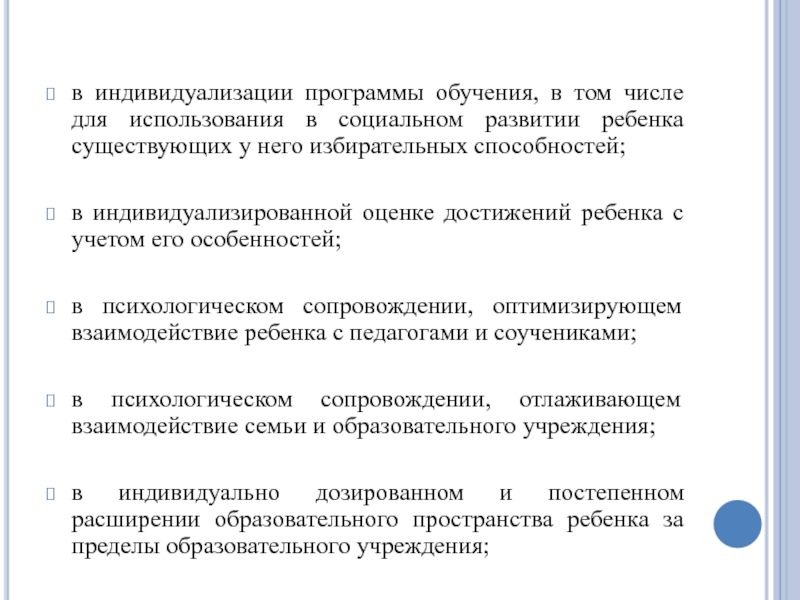 в индивидуально дозированном и постепенном расширении образовательного пространства ребенка за пределы образовательного учреждения;