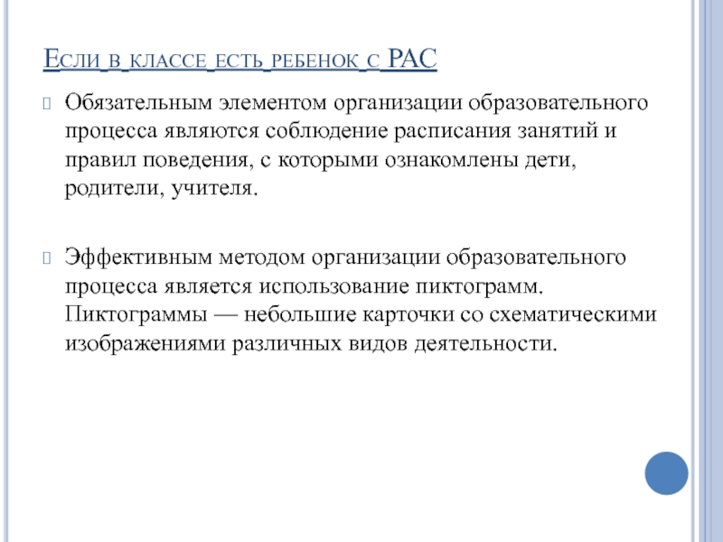 Значительные сложности при организации учебного процесса могут представлять потребность ребенка с РАС в соблюдении постоянства