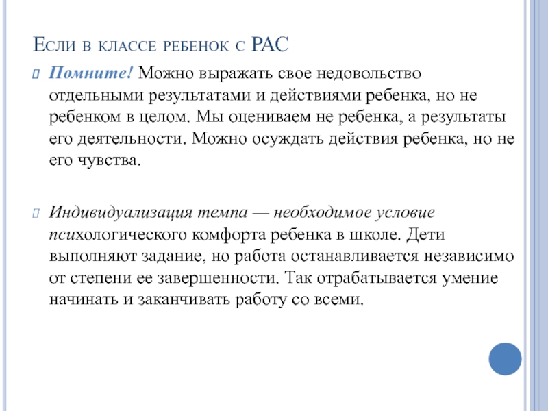 Слайд 20Высокая вероятность появления дезадаптивного поведения. ( негативизм, усиление аутостимуляции, разные формы