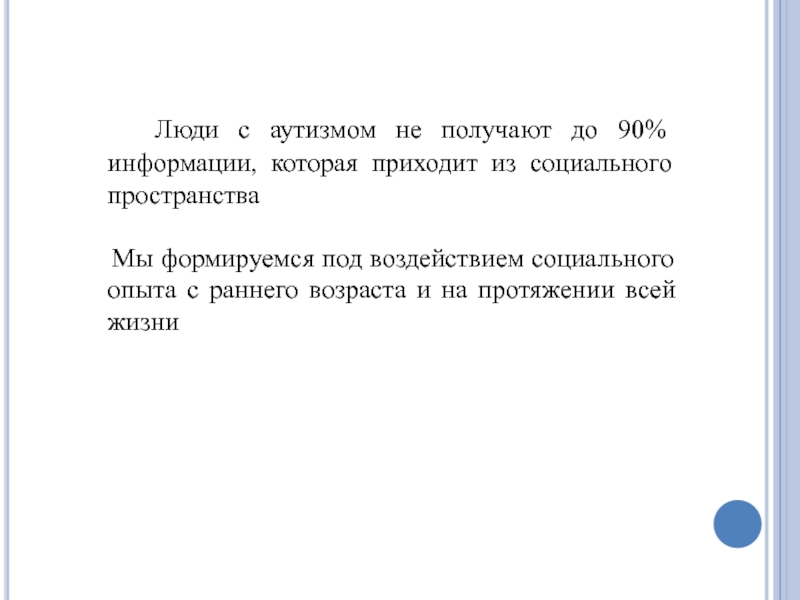 Слайд 8 Люди с аутизмом не получают до 90% информации, которая