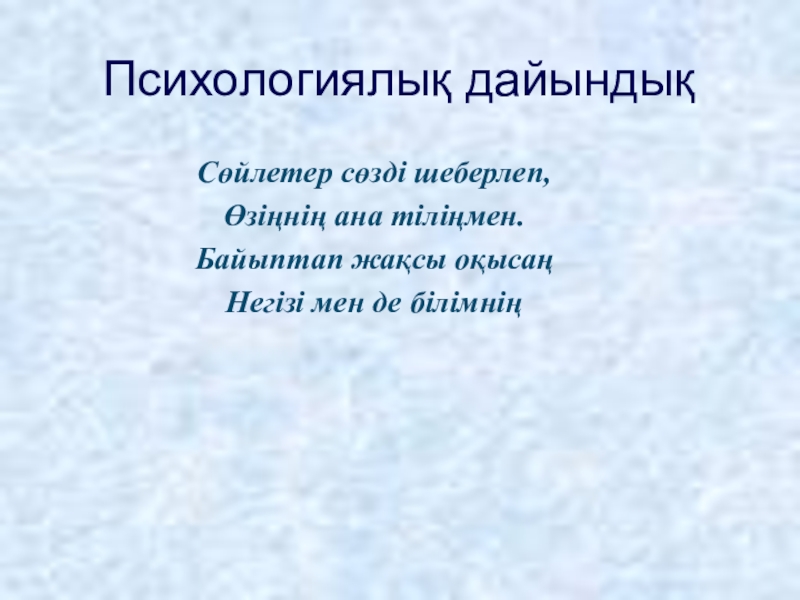 Психологиялық дайындық Сөйлетер сөзді шеберлеп,Өзіңнің ана тіліңмен.Байыптап жақсы оқысаңНегізі мен де білімнің