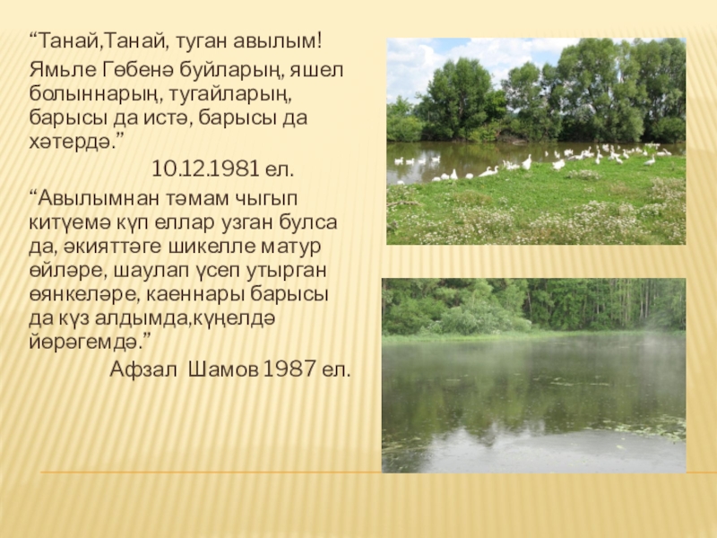 Афзал ага Шамов -татар совет әдәбиятына нигез салучы өлкән буын әдипләренең берсе. Без аны балалар өчен язылган “Ипи кадере”, “Суган” , “Киндер букча”, “Соры мәче” хикәяләре аша беләбез. Өлкәннәр өчен дә ул бик күп хикәяләр, повестьлар иҗат иткән. Аның иҗат кыры киң. А.С. Пушкин, Л.Н. Толстой , Н. Островский әсәрләрен тәрҗемә итеп безгә җиткерүче дә ул.